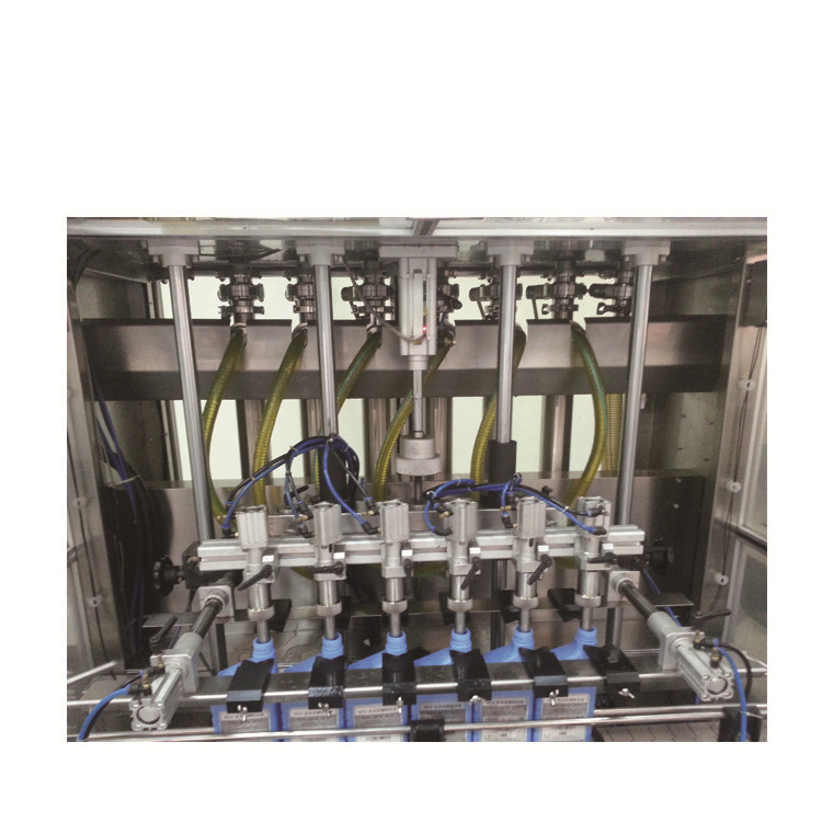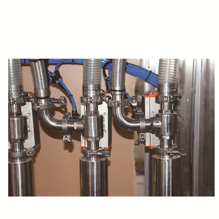 3. Може се задовољити потреба за већим учинком прихватањем храњења са две шине, пуњењем са две шине и завртањем или превртањем капака са две млазнице. Ова машина има високу тачност пуњења и може се једноставно демонтирати и стерилисати, користећи брзу спојку пумпе од нехрђајућег челика. Уз употребу сталног завртња поклопца закретног момента и пнеуматског заштитника, заптивена уста су непропусна.